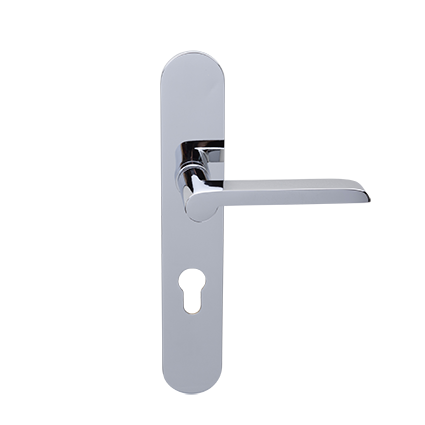 Deurkruk Bremen chroom op ovaal geveerd schild met cilindergat
