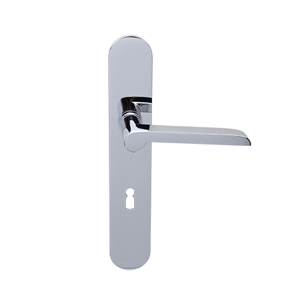 Deurkruk Bremen chroom op ovaal geveerd schild met sleutelgat