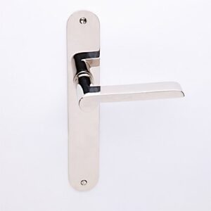 Deurkruk Bremen nikkel op ovaal schild met sleutelgat