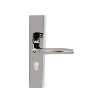 Deurkruk Burchartz nikkel op haaks geveerd schild met cilindergat