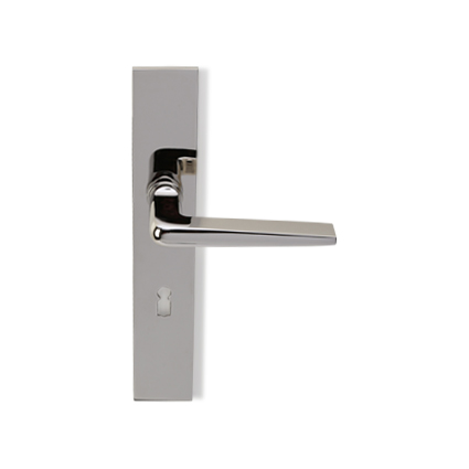 Deurkruk Burchartz nikkel op haaks geveerd schild met sleutelgat