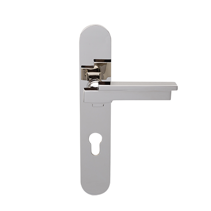 Deurkruk Dessau nikkel op ovaal geveerd schild met cilindergat