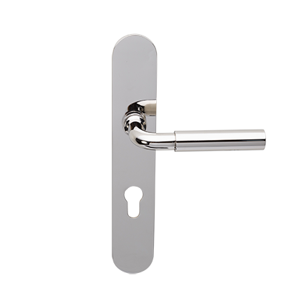 Deurkruk Frankfurt nikkel op ovaal geveerd schild met cilindergat