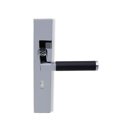 Deurkruk Hamburg chroom/ebben op haaks geveerd schild met sleutelgat