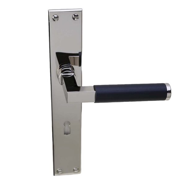 Bekende deurkrukken in Bauhaus stijl. Idem als op Bauhaus schild blind maar dan met een sleuteluitsparing, afstand midden krukgat tot midden sleutelgat. Wegens het ebbenhout niet geschikt voor buitengebruik.
