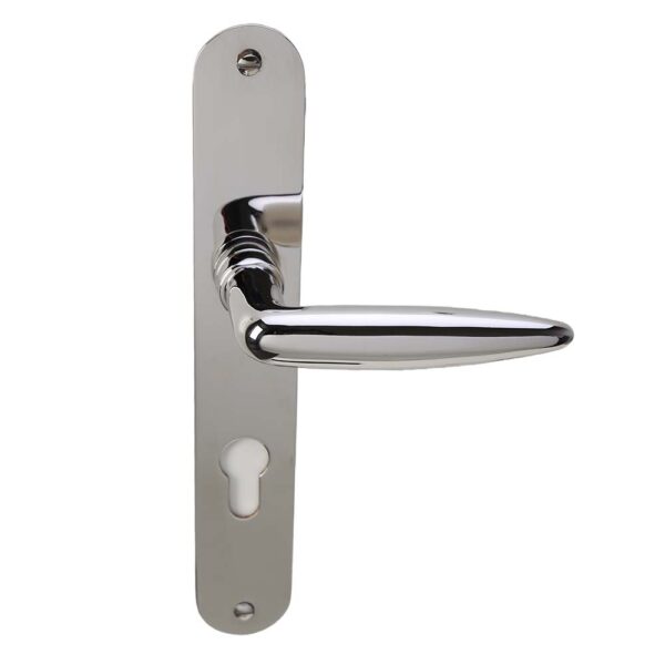 Idem als op ovaal schild blind maar dan met een cilinderuitsparing, afstand midden krukgat tot midden cilindergat.