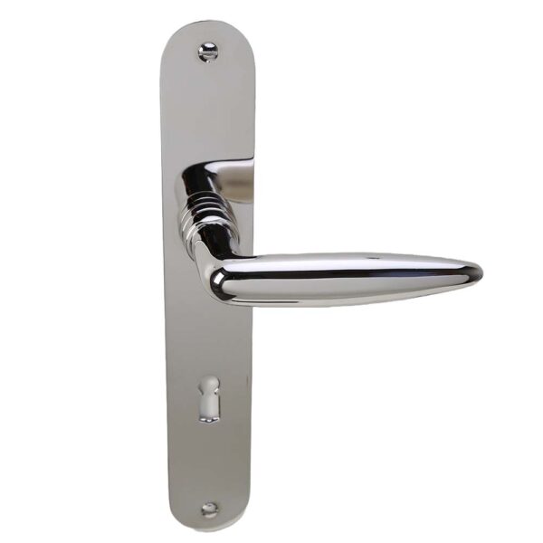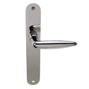 Deurkruk Hilversum nikkel op ovaal schild met sleutelgat