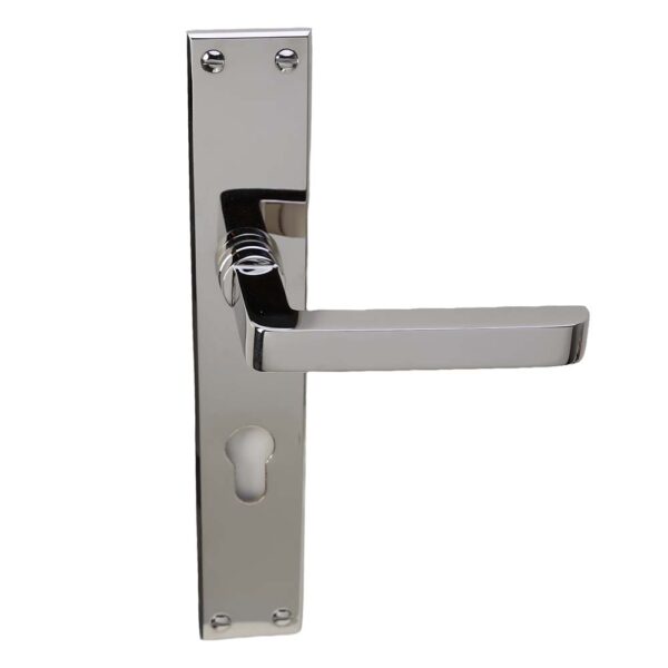 Deurkruk Köln nikkel op Bauhaus schild met cilindergat