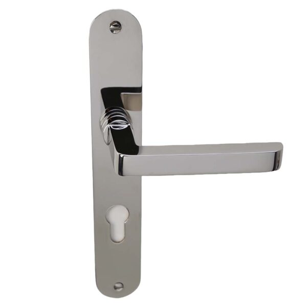 Idem als op ovaal schild blind maar dan met een cilinderuitsparing, afstand midden krukgat tot midden cilindergat.