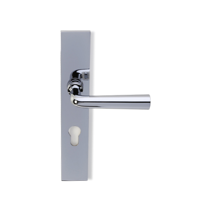 Deurkruk München chroom op haaks geveerd schild met cilindergat