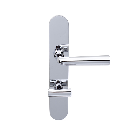 Deurkruk München chroom op ovaal geveerd schild vrij- en bezet uitvoering Mies