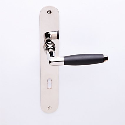 Idem als blind, maar dan met een sleutelgatuitsparing, afstand midden krukgat tot midden sleutelgat. Wegens het ebbenhout niet geschikt voor buitengebruik.