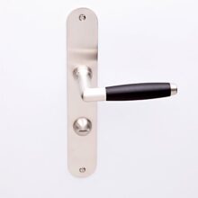 Idem als blind, maar dan met een toilet/badkamersluiting, afstand midden krukgat tot midden slot. Stift 8mm. Wegens het ebbenhout niet geschikt voor buitengebruik.
